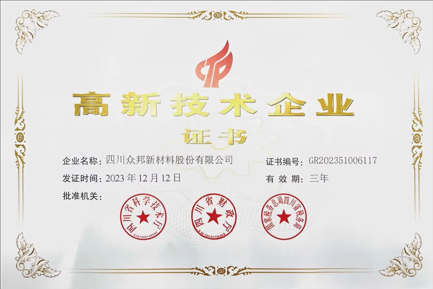 2023年12月,經(jīng)評定,我公司成為高新技術(shù)企業(yè)。